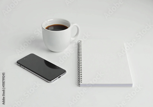 smartphone, hot drink, notebook, minimalist, desk, workspace, technology, modern, sleek, clean, office, device, table, productivity, stylish, elegant, minimal, professional, stationary, mobile, trendy, business, creativity, writing, organisation, design, digital, simplicity, contemporary, tech, empty, background, ergonomic, workplace, innovation, lifestyle, sharpened, detail, clarity, aesthetic, work, contraption, composition, inspiration, light, branding