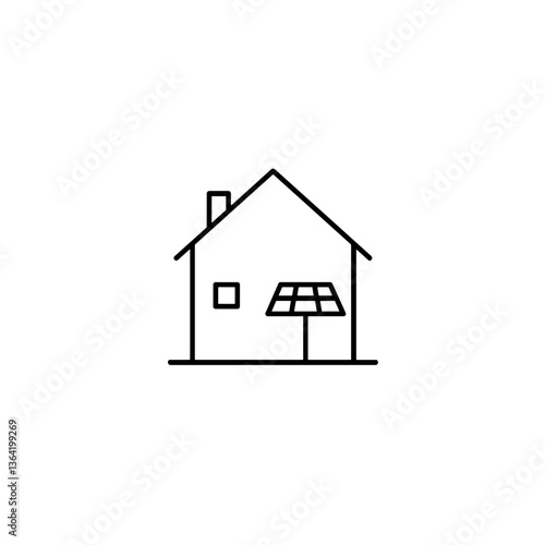 Minimalist eco house with solar panels in simple black outline