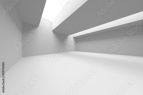 Minimalist empty room interior with abstract architectural design elements. 3d render.