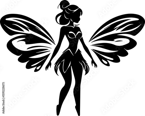 graphic, beauty, art, fantasy, girl, beautiful, sprite, logotype, black-and-white, pixie, white, illustration, black, vector, outline, isolated, icon, symbol, silhouette, person, people, imagination, cartoon, fairy, elf, female, design, tale, magic, vignetting, nymph, front, enchantment, dream, charme, badge, enchantress, doodle, portrait, mythical, set, signs, fly, butterfly, collection