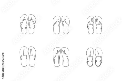 Minimalist Flip Flops Outline Icon Vector Collection Featuring Sandals Slippers and Footwear in Simple Black and White Contour Style Perfect for Web Design Mobile Apps and Summer Fashion Illustrations