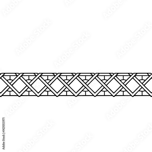 Minimalist Geometric Border Ornament on White, Line Art, Vector
