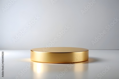 Minimalist golden display platform isolated on white background, perfect for product presentation