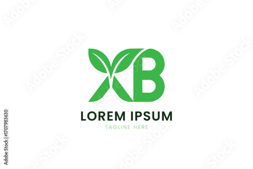 Minimalist green leaf xb logo with lorem ipsum text for nature and business