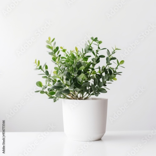 Minimalist Green Potted Plant on White Background, Modern Home Decor, Indoor Foliage