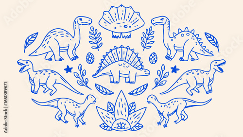 Minimalist hand drawn sketch dinosaurs vector illustration.