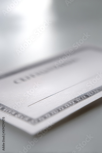 minimalist health certificate featuring blurred white text bars against ultrabright white background
