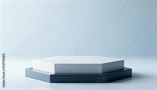 minimalist, hexagon, display, product, presentation, showcase, light, blue, background, dais, racked, platform, geometric, shape, modern, abstract, studio, stage, exhibit, advertising, commercial, marketing, promotion, mock, empty, blank, space, copy, template, design, element, render, three-dimensional, illustration, elegance, clean, simple, surface, contemporary