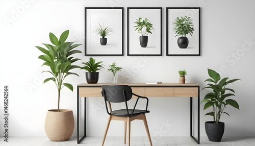Minimalist Home Office Desk with Plants and Artwork