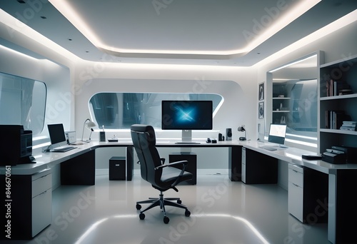 minimalist interior design style futuristic home office sleek furniture state of the art technology