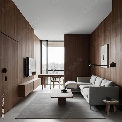 Minimalist Interior design with wooden and concrete wall