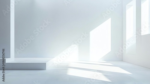 Minimalist interior with natural light, white walls, and airy space.