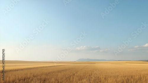 Minimalist landscape with open field and soft blue sky, calm daylight and clean composition, perfect for background, banner, nature design, or peaceful scenery projects.