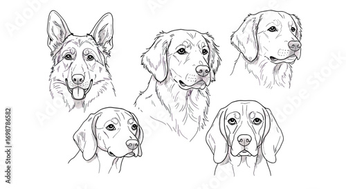 Minimalist Line Art Dog Faces – Different Breeds Illustration
