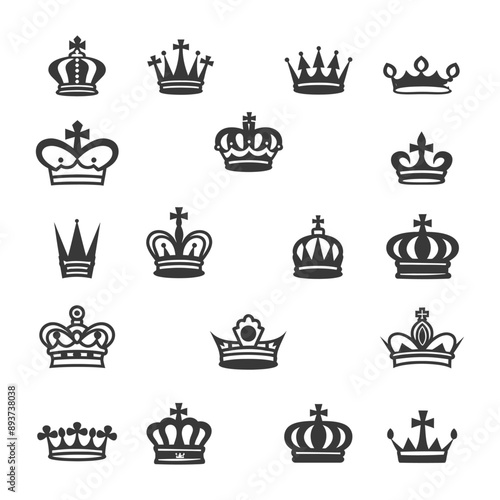 minimalist, line, art, icon, crown, collection, set, logotype, symbol