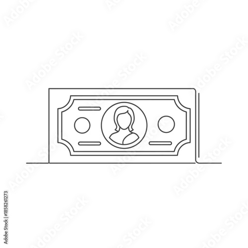 Minimalist Line Art Illustration of a Single Currency Bill for Financial and Banking Concepts