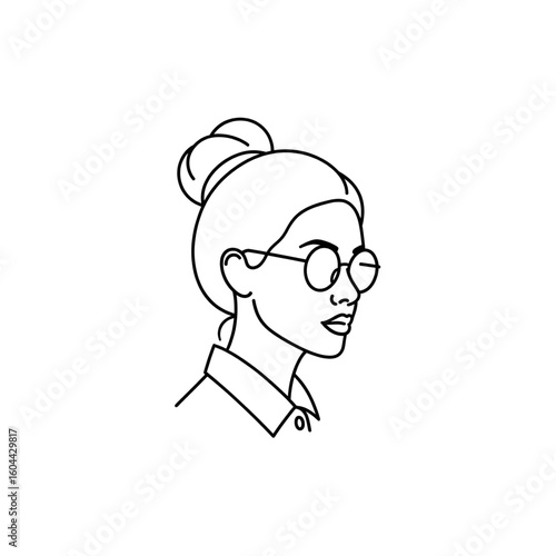 Minimalist Line Art of Woman Hairstyle and Glasses Smart Girl Logo