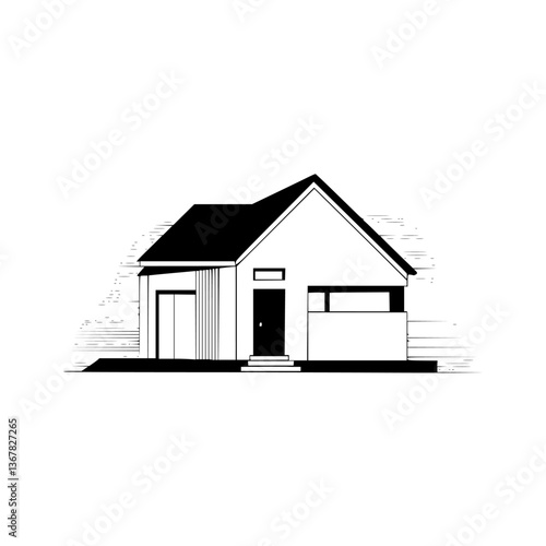 vector, house, home, architecture, modern, minimalist, line art, black-and-white, graphic, illustration, design, building, exterior, residential, property, simple, clean, contemporary, style, vignetting, real estate, blueprint, drawing, monochrome, geometric