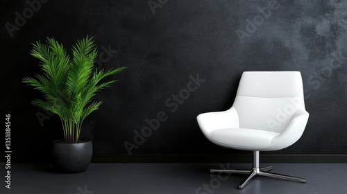 modern, minimalist, lounge, chair, white, black, dark, wall, plant, interior, design, room, living, space, home, furniture, contemporary, decor, simple, elegant, comfortable, cosy, quiet, stylish, neutral, accent, decorating, apartment, office, waiting, modernist, clean, sleek, sophisticated, empty, empty space, living room, potted plants, interior design, architecture, home decor, relaxing, calm
