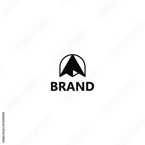 Minimalist Mountain Peak Arrowhead or Man Hat Head Logo with white background.