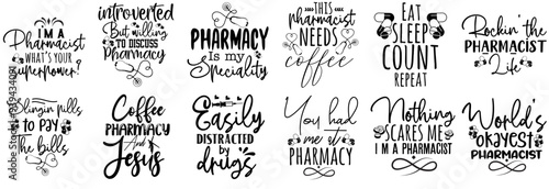 Minimalist Pharmacist Calligraphic Lettering, Typography Bundle Vector Illustration for Vouchers, T-Shirt Design, Infographic