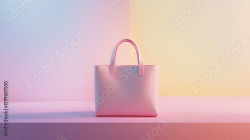 Minimalist pink shopping bag on a pastel gradient background