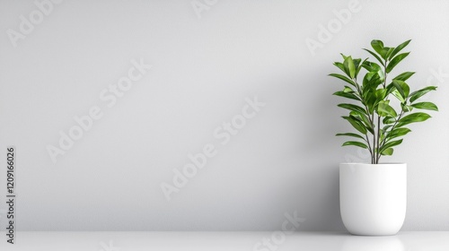 Minimalist plant, white pot, grey wall, modern interior design, home decor