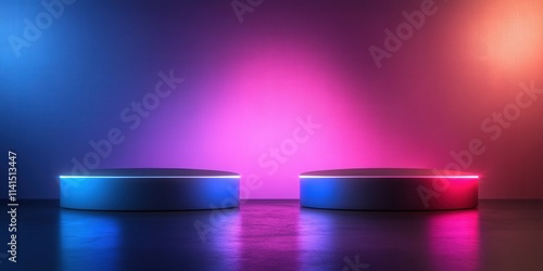 Minimalist Podium with Smooth Edges on a Gradient Background Emitting Soft Colored Lights for Presentation or Display