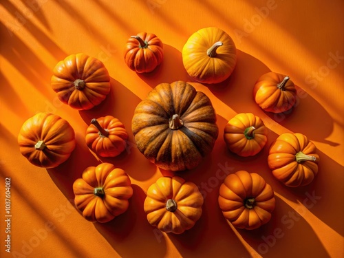 pumpkin, autumn, halloween, minimalist, tropical, shadow, orange background, texture, warm colors, nature, harvest, festive, graphic design, contemporary, composition, still life, home decor, celebration, artistic, photo, vibrant, unique, rustic, elegance, playful, charming, cosy, color palette, graphic elements, aesthetic