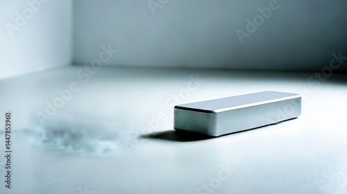 Minimalist rectangular object on white, abstract tech concept with clean geometry
