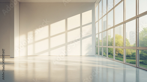 minimalist, rental, studio, large, glasses, wall, bright, natural, light, interior, modern, roomy, empty, architecture, design, window, sunlight, floor, urban, city landscape, view, clean, open, airy, contemporary, peaceful, serene, elegant, simple