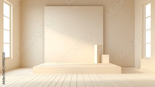 room, beige, minimalist, platform, canvas, blank, display, design, interior, architecture, simple, clean, modern, style, aesthetic, background, scene, product, showcase, presentation, exhibition, gallery, space, empty, neutral, colours, tone, texture, light, shadow, sunlight, window, wall, floor, wood, wooden, flooring, board, plank, subtile, muted, calming, serene, peaceful