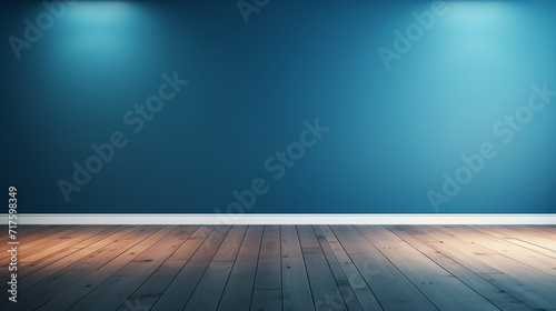 Minimalist Scene with Light Blue Walls and Wooden Floor, Embracing Simplicity and Elegance, Illuminated by Studio Lighting for a Clean and Modern Aesthetic