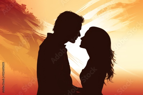 Minimalist silhouettes of lovers leaning towards each other in elegant profile design
