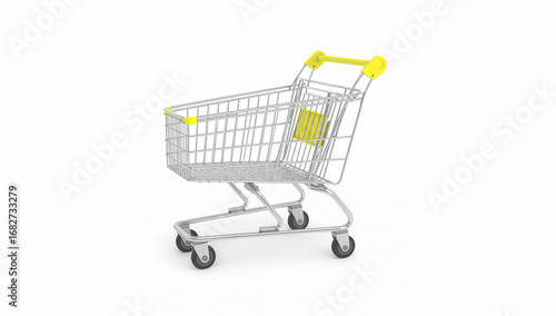 Minimalist Silver Shopping Cart on White Background