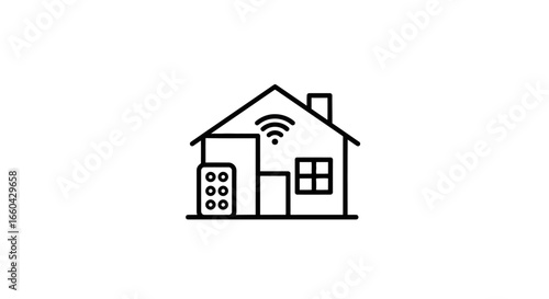 Minimalist Smart Home Icon with WiFi Signal and Remote Control Panel on a White Background.