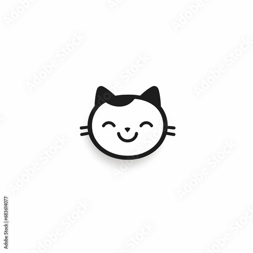 Minimalist Smiling Cat Face Icon or Logo on a White Background