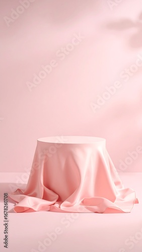 pink, minimalist, dais, product, display, empty, round, fabric, smooth, pastel, soft, studio, light, shadow, draped, texture, three-dimensional, blank, background, surface, modern, clean, geometric, abstract, elegant, presentation, fashion, aesthetic, design, photo, image