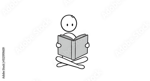 Minimalist Stick Figure Engrossed in Reading a Gray Book, Cross-