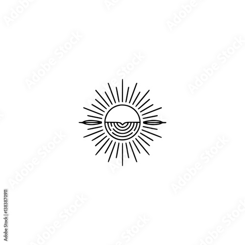 Minimalist Sun Logo with Geometric Lines, Modern Aesthetic, Design Element