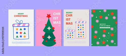 minimalist trendy gift Merry Christmas post card poster cover design template