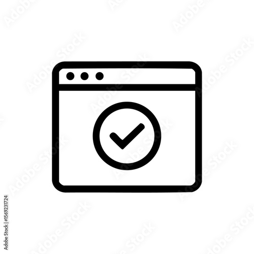 Minimalist vector icon of a verified job portal window, featuring a browser frame and check mark to indicate trusted platform.