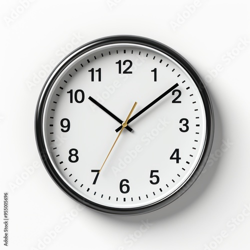 Minimalist Wall Clock with Black Hands on White Background