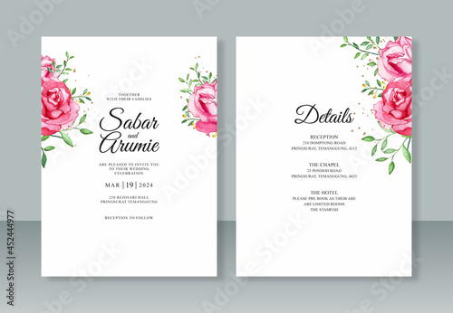 Minimalist wedding invitation template with floral watercolor painting