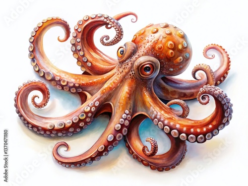 octopus, oil painting, white background, minimalist, detail, animal, marine animal, marine life, underwater, artwork, art, painting, wildlife, nature, closeup, macro, texture, cephalopod, mollusc, invertebrate, ocean, sea, beautiful, elegant, realistic, fine art, hi-res, still life, biodiversity, ocean life, underwater photography, artistic, vibrant, colours, smooth, detailed, intricate, smooth skin, sucker, tentacle