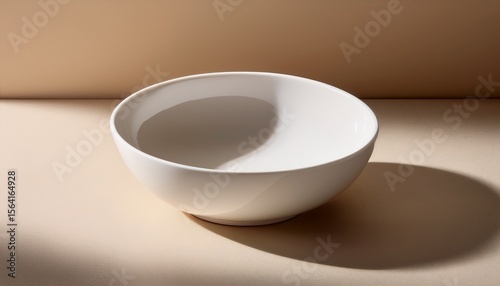 minimalist white ceramic bowl on soft beige background with subtle shadows perfect for product mockup kitchen design branding or food related visual compositions