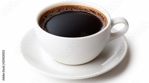 Minimalist white cup of freshly brewed black coffee on a clean white background
