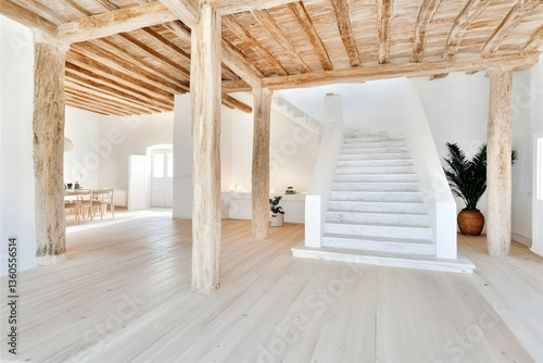 interior, design, minimalist, white, wood, beam, marble, stair, house, home, architecture, modern, contemporary, style, luxury, roomy, bright, airy, elegant, clean, simple, chic, sophisticated, aesthetic, beauty, calm, peaceful, serene, tranquil, relaxing, comfortable, inviting, welcoming, open, plan, floor, ceiling, wall, light, natural, rustic, farmhouse, villa, property, real estate, home decor, lifestyle