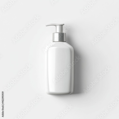 bottle, white, lotion, pump, dispenser, container, cosmetic, product, cardboard box, blank, clean, simple, beauty, skincare, hygiene, health, minimalist, design, studio shot, topview, isolated, nobody, empty, cream, liquid, soap, shampoo, gel, plastic, metal, silver, health care, bodycare, beauty product, personal hygiene, white background