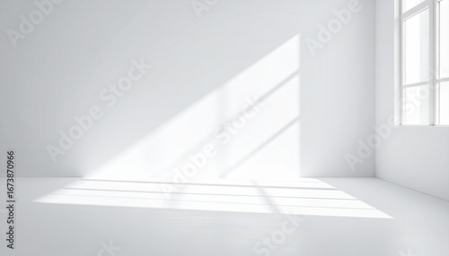 white, room, interior, empty, clean, minimalist, modern, bright, light, shadow, sunlight, window, geometric, pattern, design, background, space, architecture, simple, neutral, contemporary, aesthetic, serene, peaceful, calm, natural, illumination, ray, line, abstract, texture, floor, wall, corner, nobody, indoor, studio, blank, clear, fresh, airy, roomy, uncluttered, elegant, sophisticated, architectural, daylight, soft, diffused